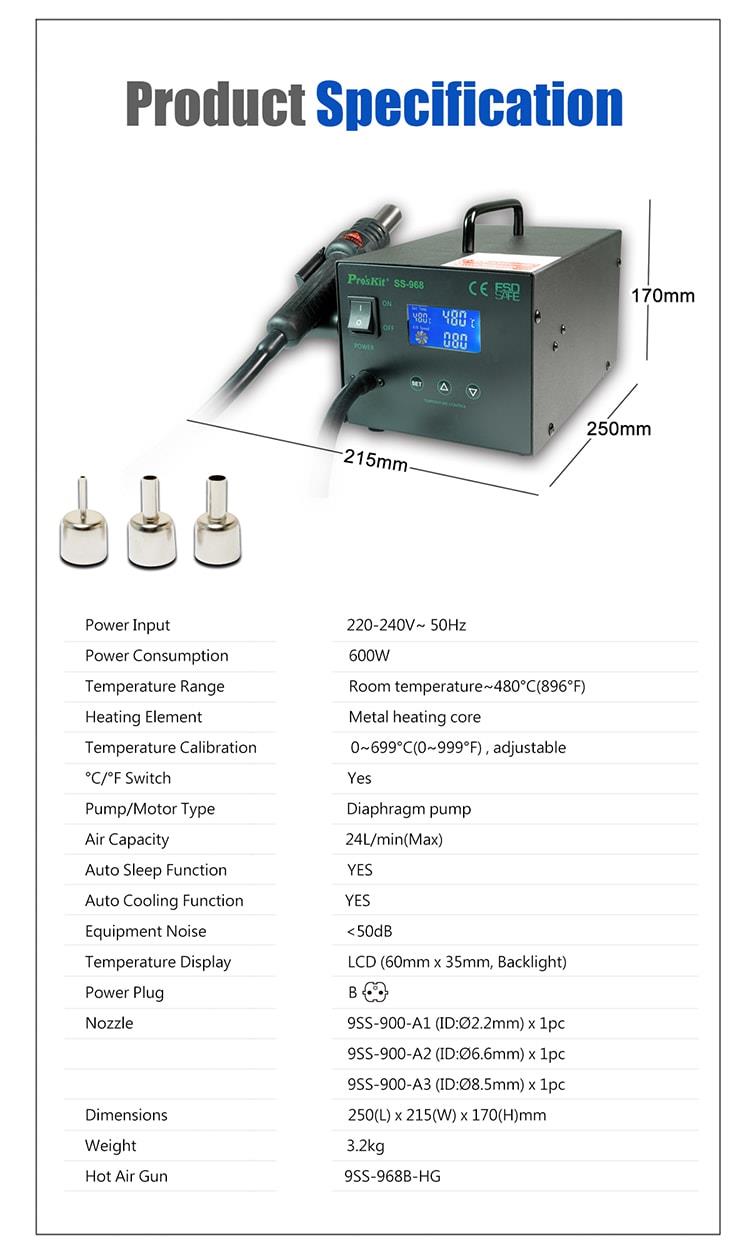 PRO'SKIT SS-968B LCD Smart Hot Air Rework Station